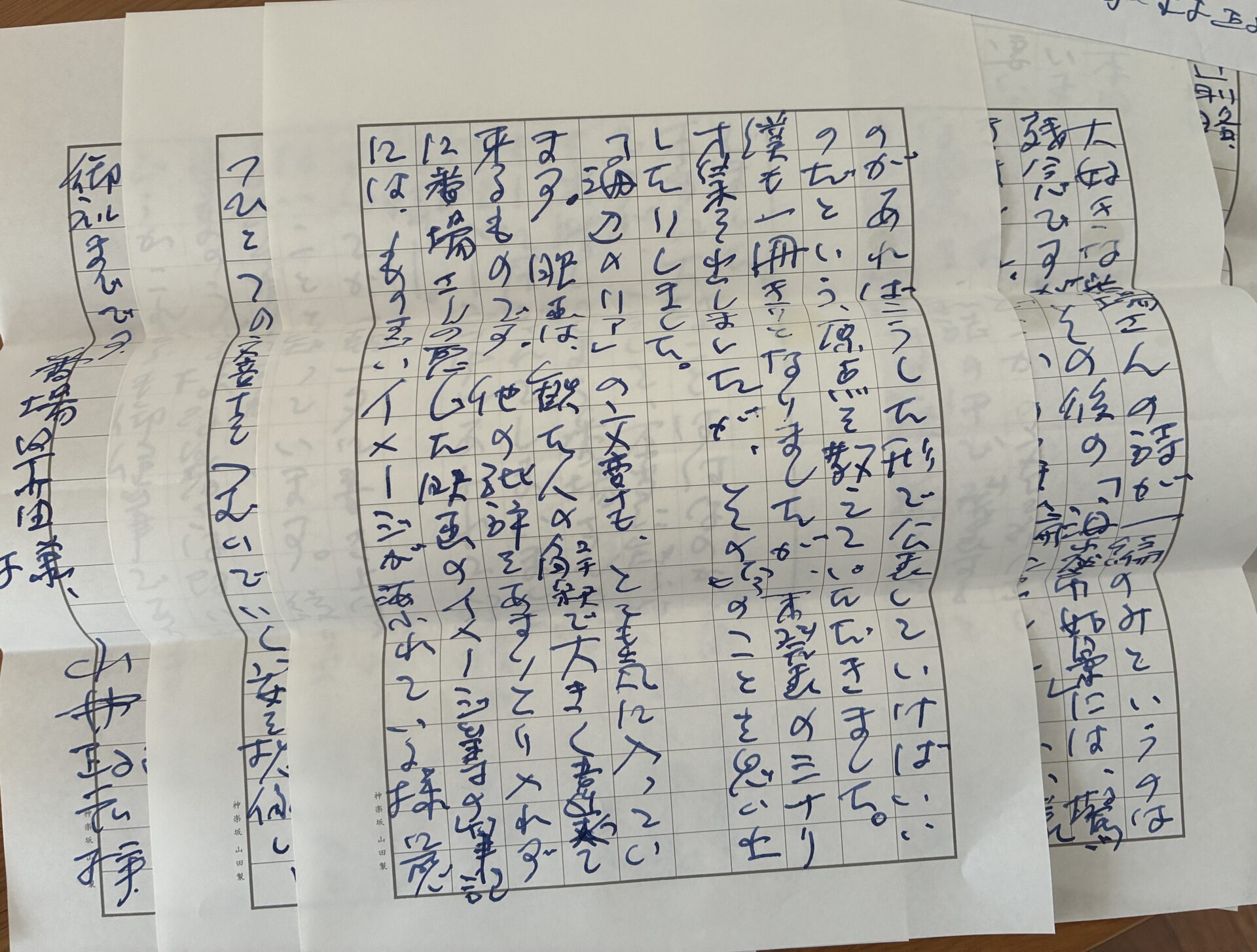 神楽坂山田製の原稿用紙5枚に特徴的な懐かしい字でびっしり書かれていました。